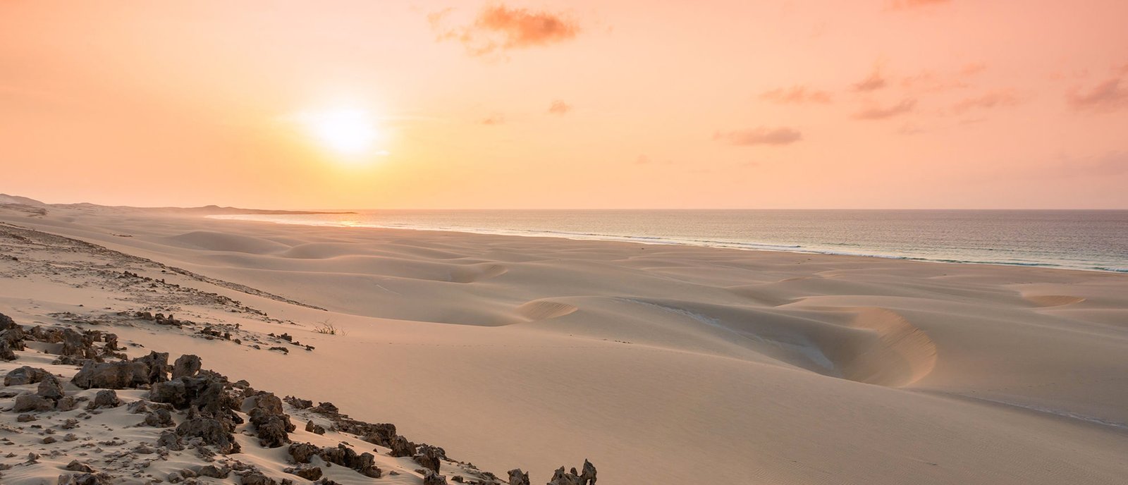La isla de Boavista es conocida por sus playas cristalinas y dunas de arena blanca. Una isla históricamente hostil para los marineros, ya que, al estar rodeada de increíbles arrecifes y rocas con muy ricas en hierro, las brújulas de los navegantes quedaban inservibles; prueba de ello son los más de 40 barcos hundidos que se encuentran en sus alrededores. Dejando las idílicas playas de la costa, el interior blanco y desértico, nos muestra una escalofriante belleza con bosques petrificados y una sensación de estar en medio de la nada. Debido a esta situación de sequía, muchas aldeas han sido despobladas y las dunas han ganado terreno comiéndose poco a poco las casas abandonadas.